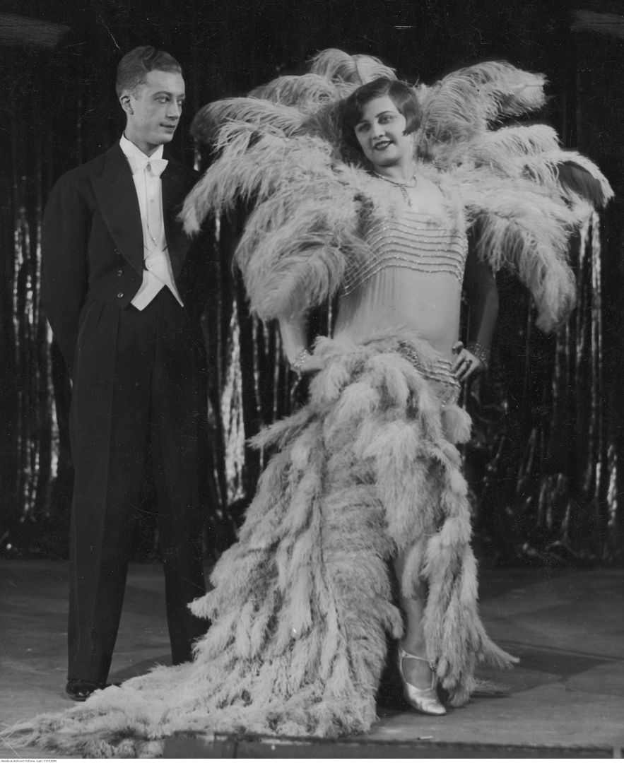 , Stanisława Karlińska i Jerzy Roland jako konferansjerzy prowadzący rewię "Uśmiech Warszawy" w Teatrze "Morskie Oko" w Warszawie w kwietniu 1934 roku., [w:] Polski słownik biograficzny, t. ,