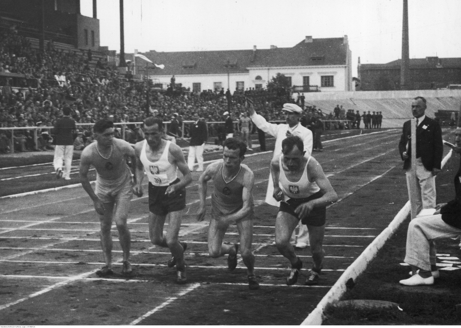 Start do biegu na 10 kilometrów podczas meczu lekkoatletycznego Polska - Francja w Warszawie w czerwcu 1938 r., [online] Warszawa: Narodowy Instytut Audiowizualny [dostęp 28.02.2026]. Dostępny w internecie: http://www.biogramy.pl/a/foto/start-do-biegu-na-10-kilometrow-podczas-meczu-lekkoatletycznego-polska-francja-w-warszawie-w-czerwcu-1938-r