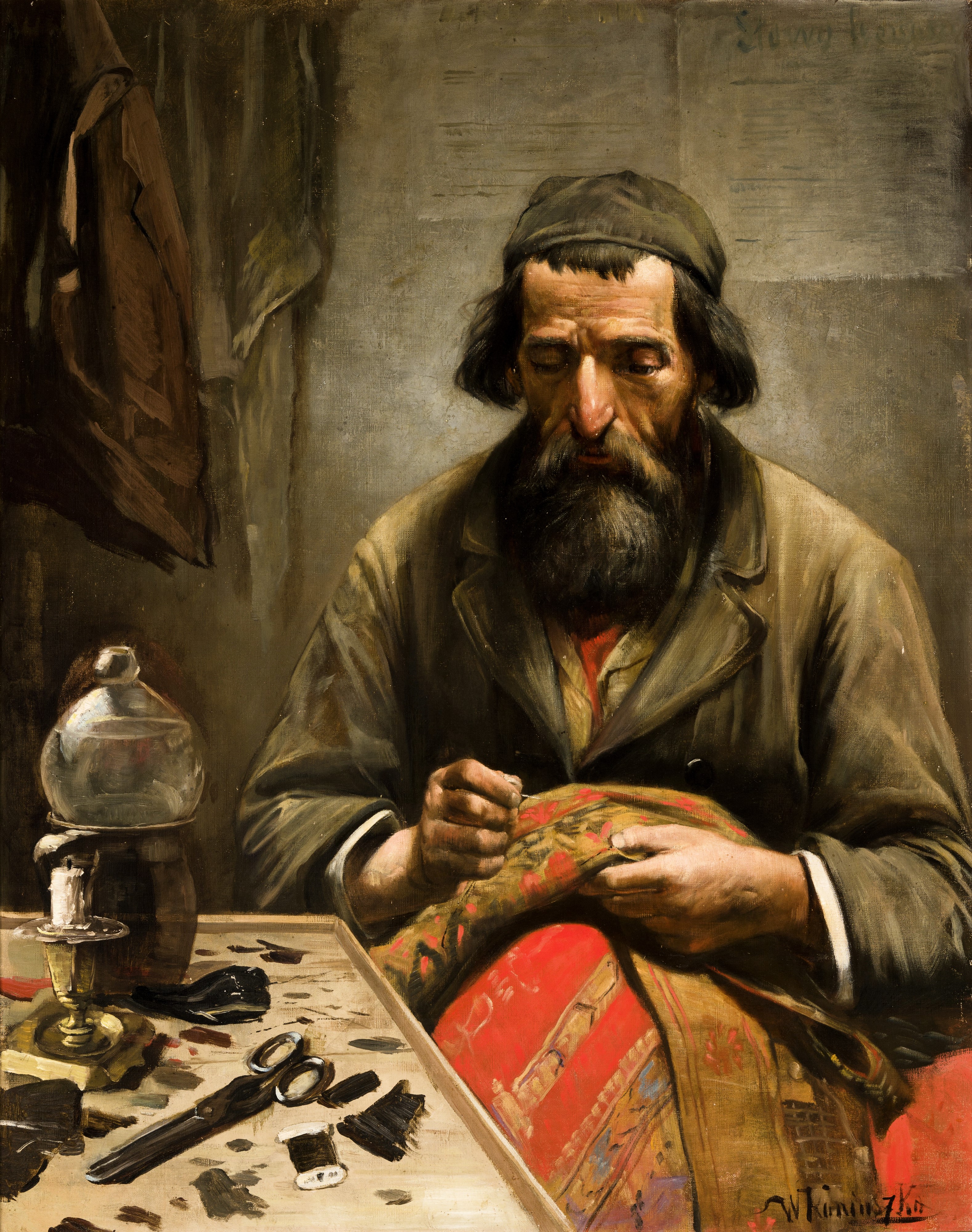 "Stary Żyd naprawiający dywan" Wacława Koniuszki., [online] Warszawa: Narodowy Instytut Audiowizualny [dostęp 28.02.2026]. Dostępny w internecie: http://www.biogramy.pl/a/foto/stary-zyd-naprawiajacy-dywan-waclawa-koniuszki
