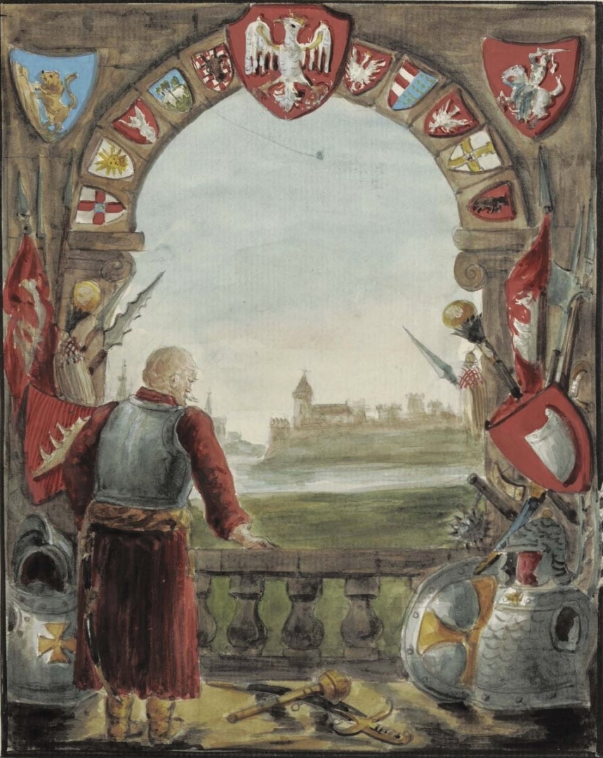 Strona z albumu Bolesława Starzyńskiego "Herby Rzeczypospolitej Polskiej i W. X. Litewskiego. T. 1", [online] Warszawa: Narodowy Instytut Audiowizualny [dostęp 17.03.2026]. Dostępny w internecie: http://www.biogramy.pl/a/foto/strona-albumu-boleslawa-starzynskiego-herby-rzeczypospolitej-polskiej-i-w-x-litewskiego-t-1