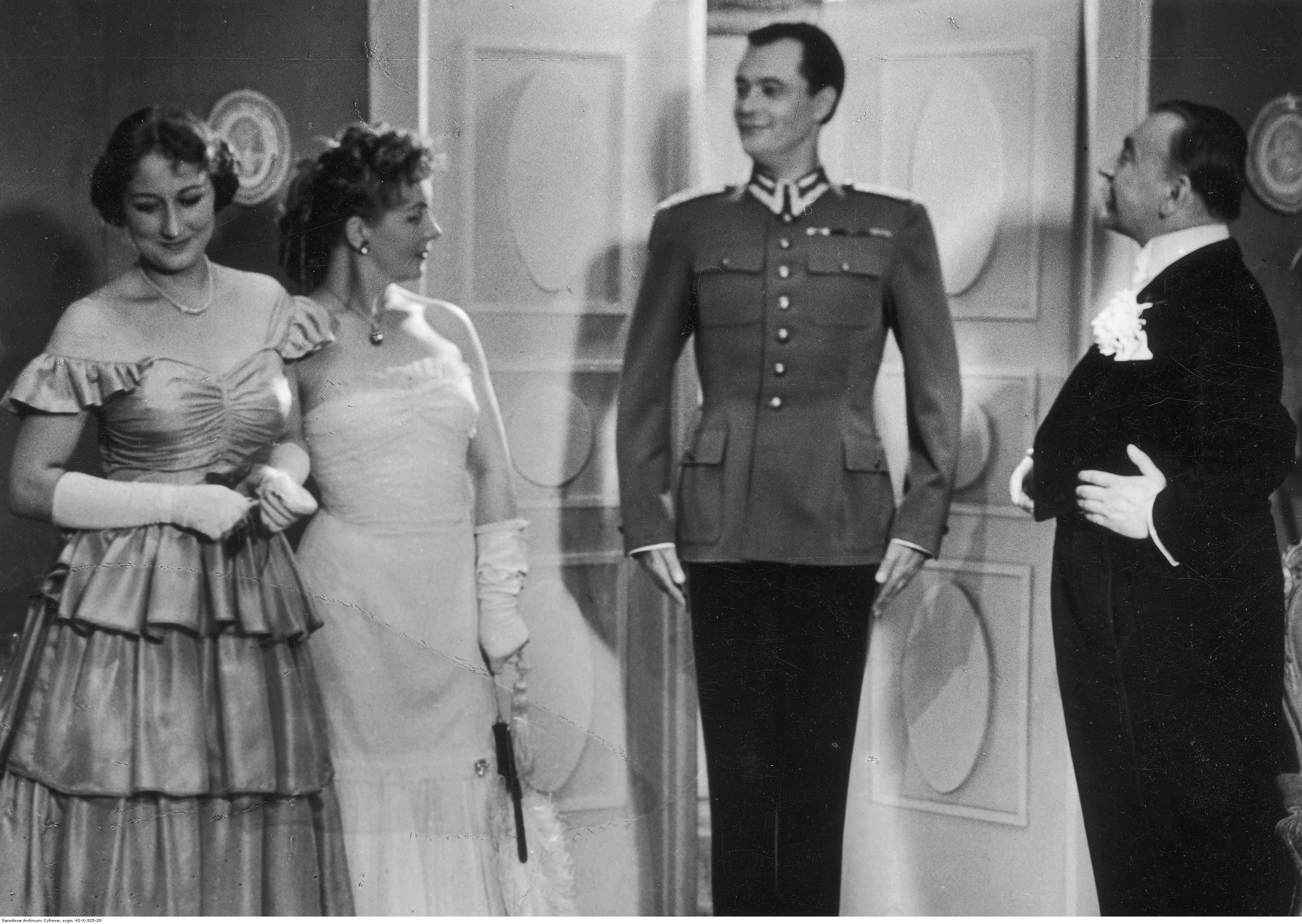 Na scenie widoczni (od lewej): Helena Morawska (Kizia), Hanna Bielicka (Róża), Jerzy Pietraszkiewicz (Rotmistrz), Tadeusz Surowa (Starołęcki).