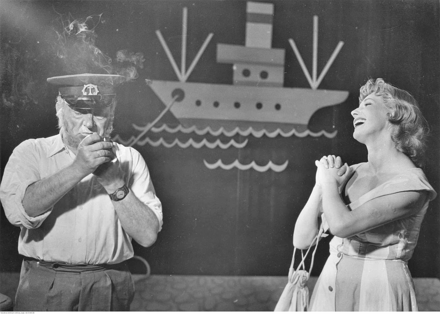 Sztuka "Rym cym cym" w Teatrze Syrena w Warszawie w 1956 r., [online] Warszawa: Narodowy Instytut Audiowizualny [dostęp 26.02.2026]. Dostępny w internecie: http://www.biogramy.pl/a/foto/sztuka-rym-cym-cym-w-teatrze-syrena-w-warszawie-w-1956-r