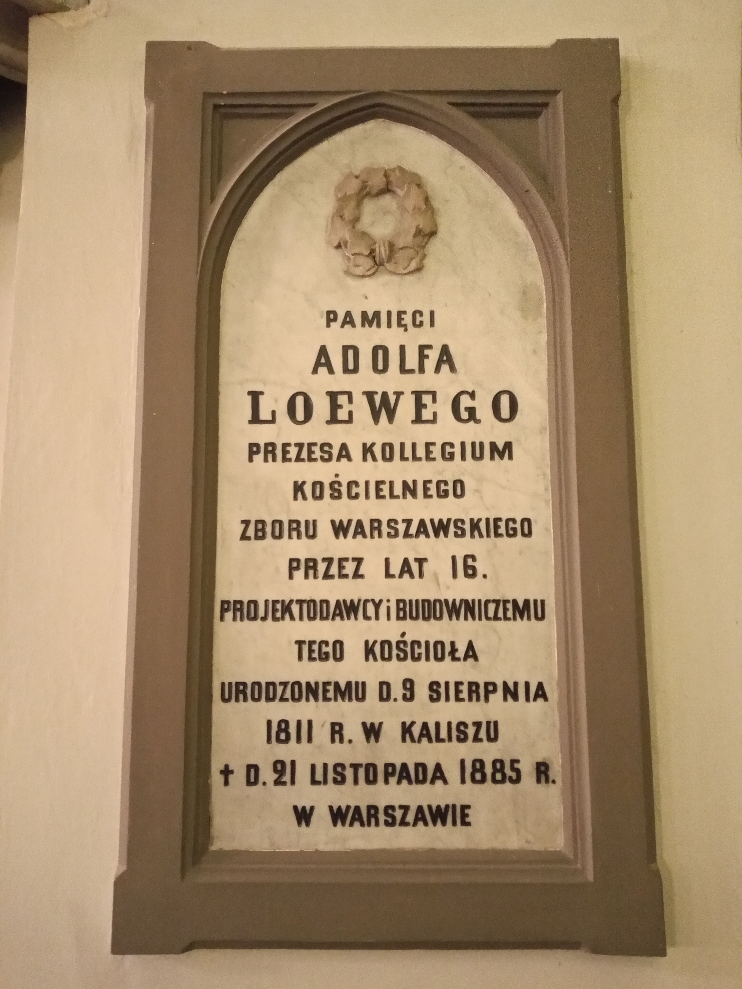 , Tablica ku czci Adolfa Loewego w kościele ewangelicko-reformowanym na warszawskim Lesznie., [w:] Polski słownik biograficzny, t. ,