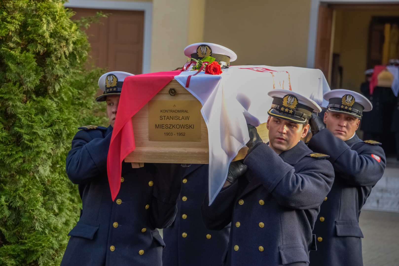 , Trumna kontradmirała Stanisława Mieszkowskiego podczas uroczystości na Helu, 15 grudnia 2017, przed uroczystym pogrzebem Trzech Komandorów w Kwaterze Pamięci Cmentarza Marynarki Wojennej w Gdyni-Oksywiu następnego dnia., [w:] Polski słownik biograficzny, t. ,