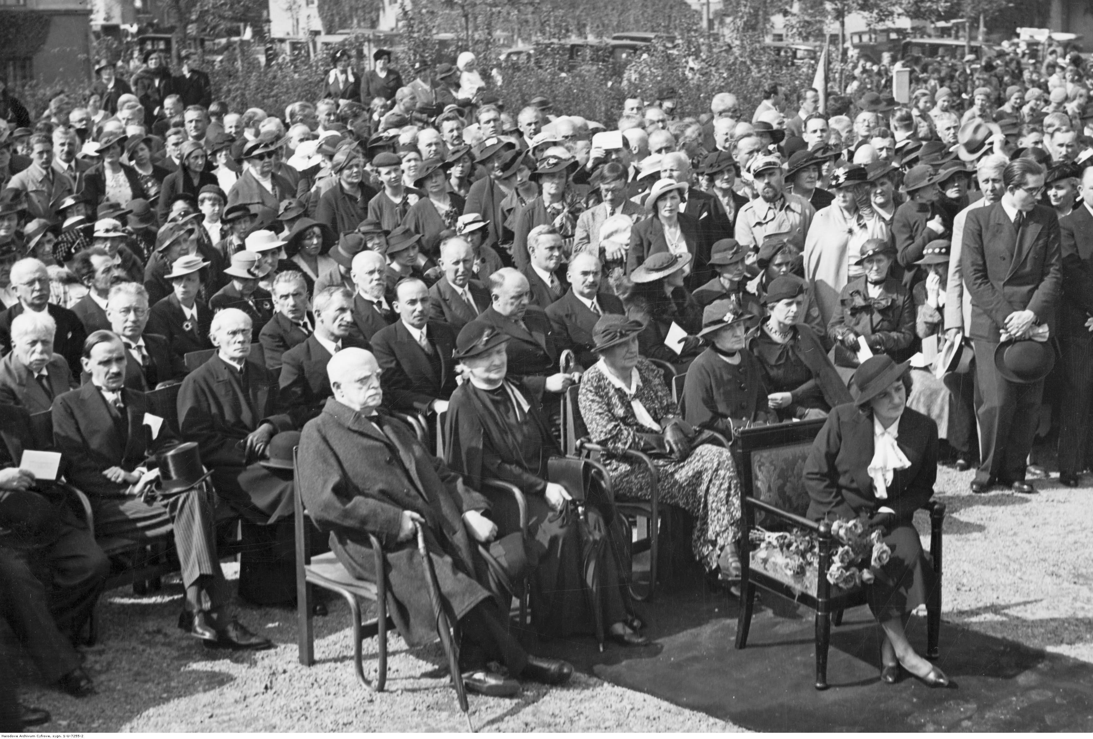 Widoczni m.in.: żona prezydenta RP, Maria Mościcka, rodzeństwo Marii Skłodowskiej-Curie: Bronisława Dłuska, Helena Szalayowa, Józef Skłodowski, wiceminister Bronisław Żongołłowicz, minister Juliusz Poniatowski, minister Wacław Jędrzejewicz, wiceminister Tadeusz Krychowski, wiceminister Eugeniusz Piestrzyński.