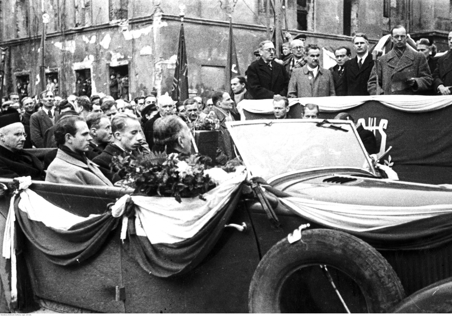 , Uroczystość sprowadzenia serca Fryderyka Chopina do Warszawy. Samochód z delegacją przed trybuną rządową. W samochodzie siedzą przedstawiciele studentów konserwatorium 17.10.1945 r., [w:] Polski słownik biograficzny, t. ,