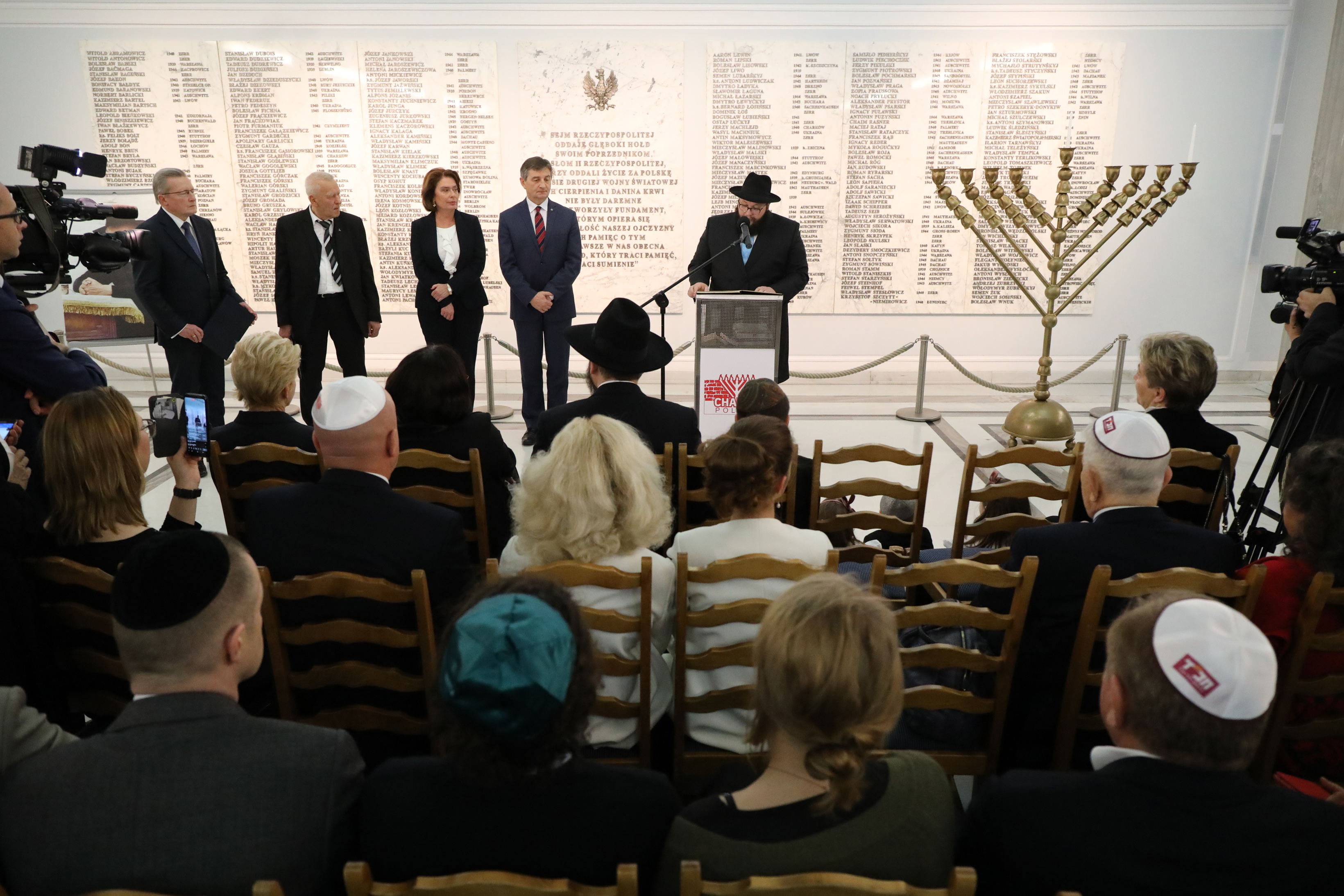 Świece zapalili wspólnie marszałek Sejmu Marek Kuchciński i rabin Shalom Dov Ber Stambler przewodniczący Centrum Żydowskiego Chabad-Lubavich Polska. Podczas uroczystości byli obecni także obecni: wicemarszałek Sejmu Małgorzata Kidawa-Błońska, marszałek senior Kornel Morawiecki, posłowie, senatorowie oraz przedstawiciele korpusu dyplomatycznego.