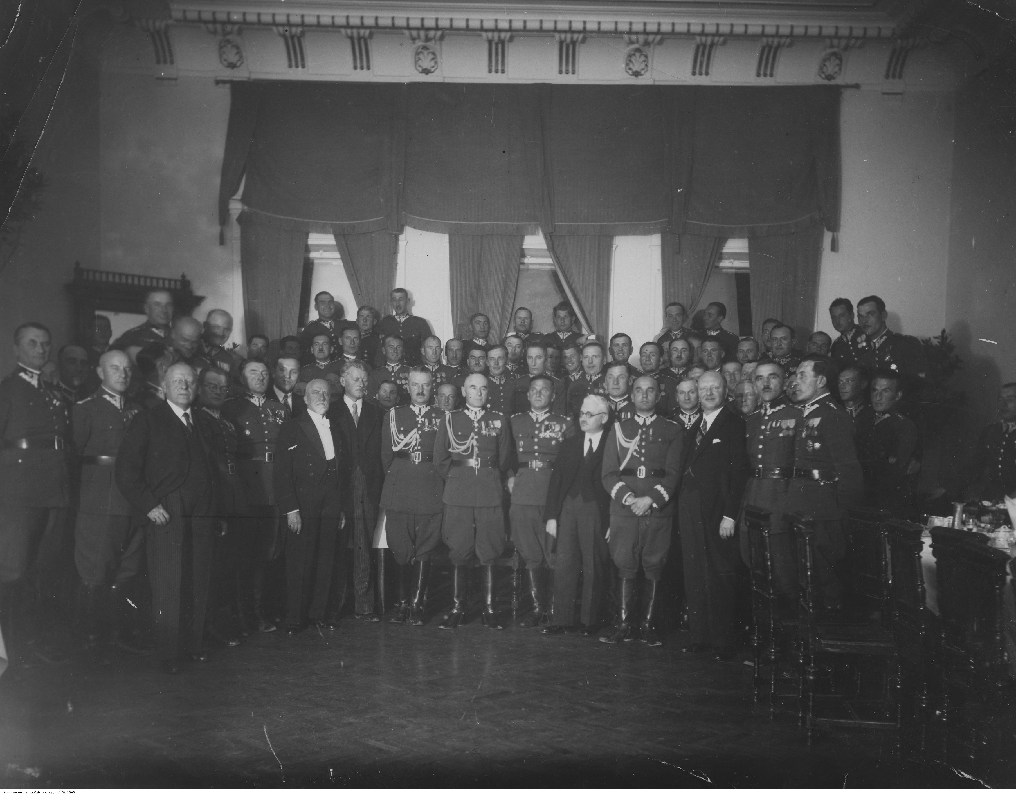 Widoczni m.in.: gen. dyw. Edward Rydz-Śmigły (w środku), minister spraw wojskowych gen. dyw. Tadeusz Kasprzycki, wiceminister spraw wojskowych gen. bryg. Janusz Głuchowski, wojewoda krakowski Michał Gnoiński, prezydent Nowego Sącza Stanisław Nowakowski, płk Stanisław Teofil Rola-Arciszewski, płk. Zygmunt Piasecki, płk Antoni Własak, płk. Józef Kustroń.