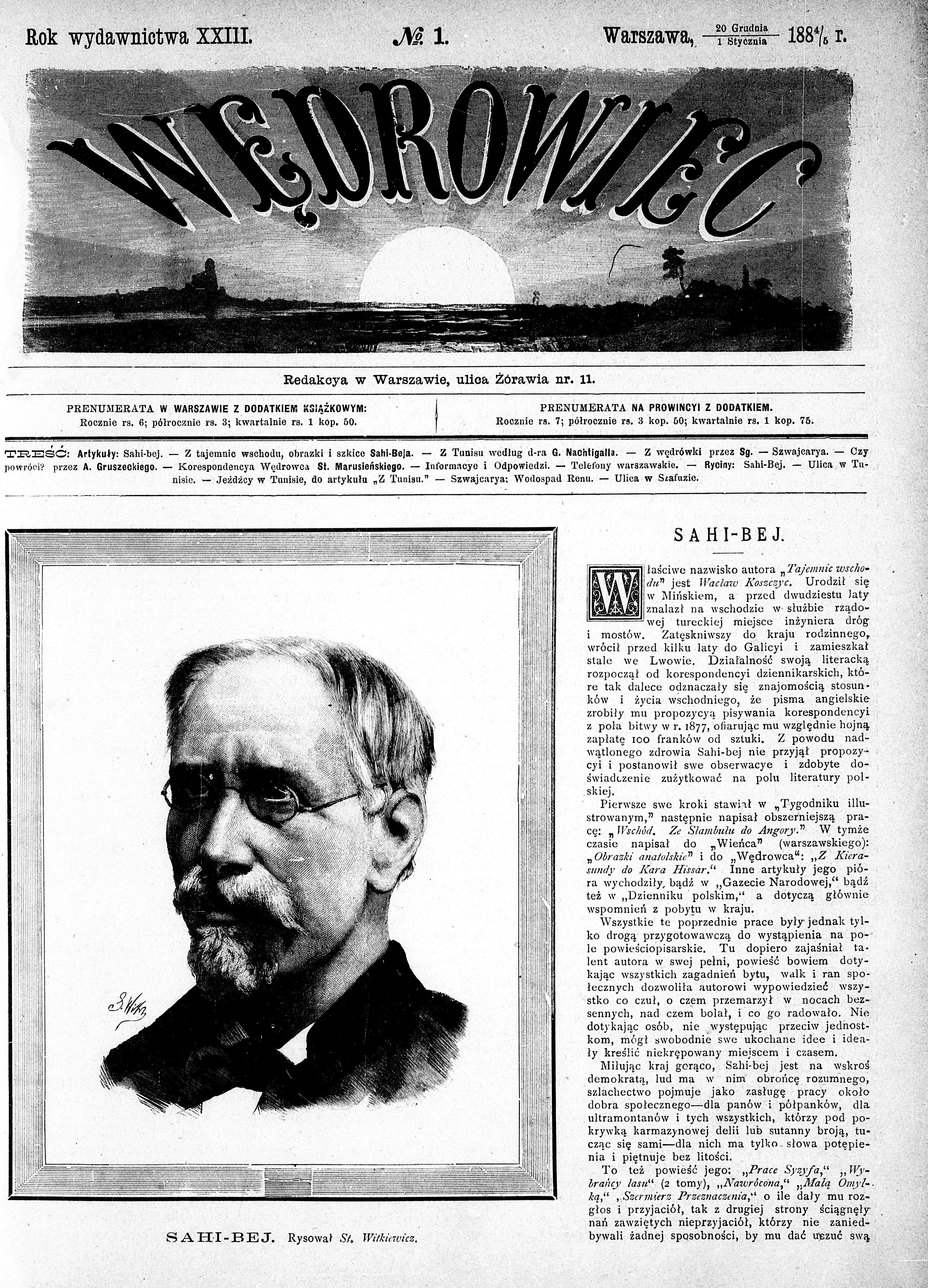 , Okładka czasopisma "Wędrowiec" z 1 stycznia 1885 roku (nr 1, R. 23)., [w:] Polski słownik biograficzny, t. ,