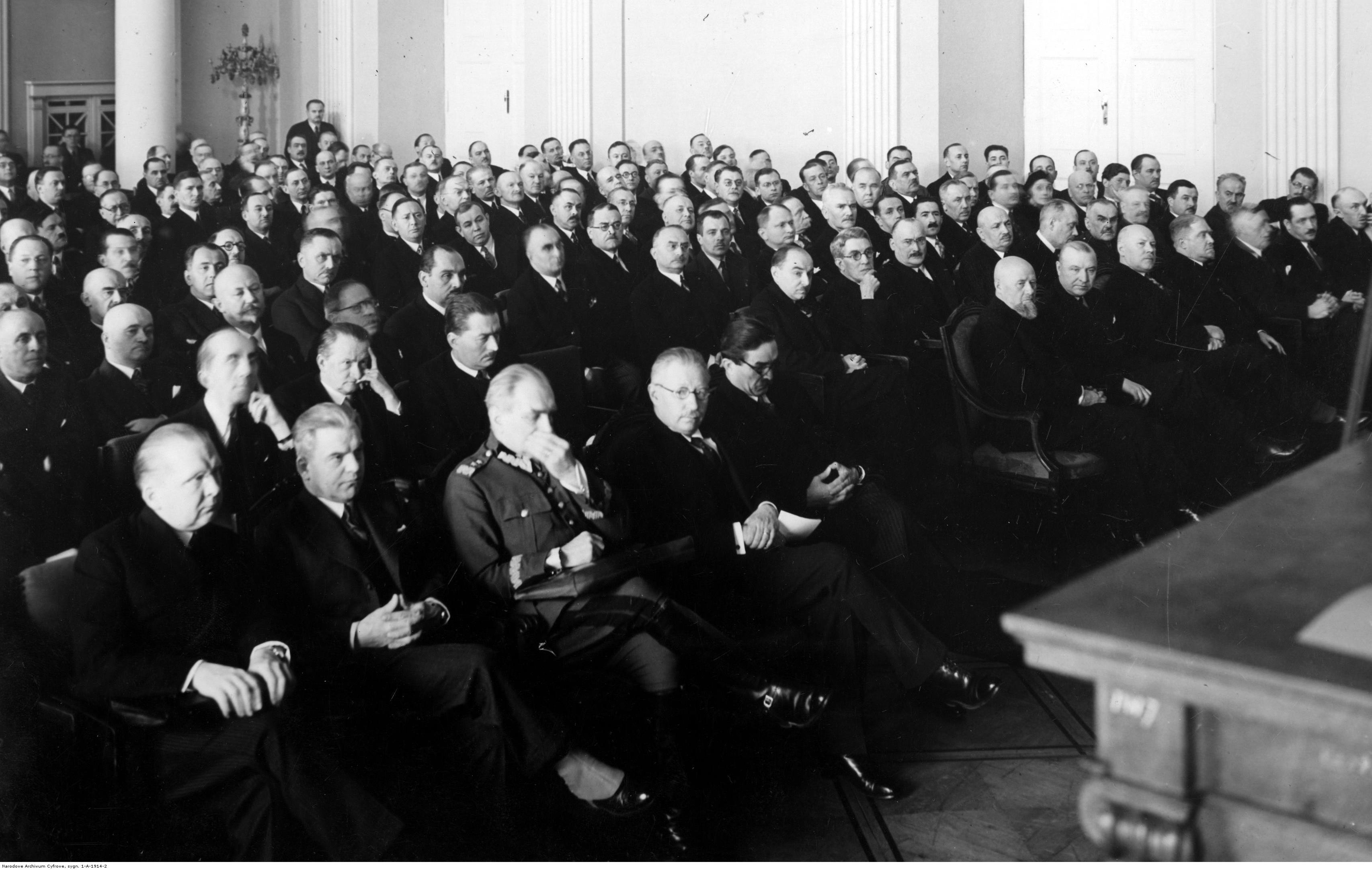 Widoczni m.in. minister poczt i telegrafów Emil Kaliński, minister wyznań religijnych i oświecenia publicznego Wojciech Świętosławski, minister komunikacji Juliusz Ulrych, marszałek senatu Aleksander Prystor, marszałek sejmu Stanisław Car, minister opieki społecznej Władysław Jaszczołt, wiceminister opieki społecznej Wincenty Jastrzębski.