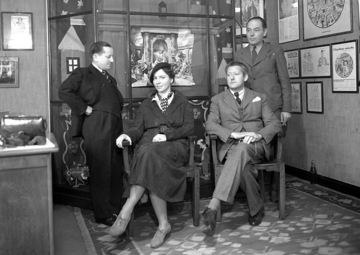 Artur Rodziński w redakcji IKC (siedzi), widoczni: Kazimierz Dobija (stoi z lewej), Jan Śmiechowski (stoi z prawej).