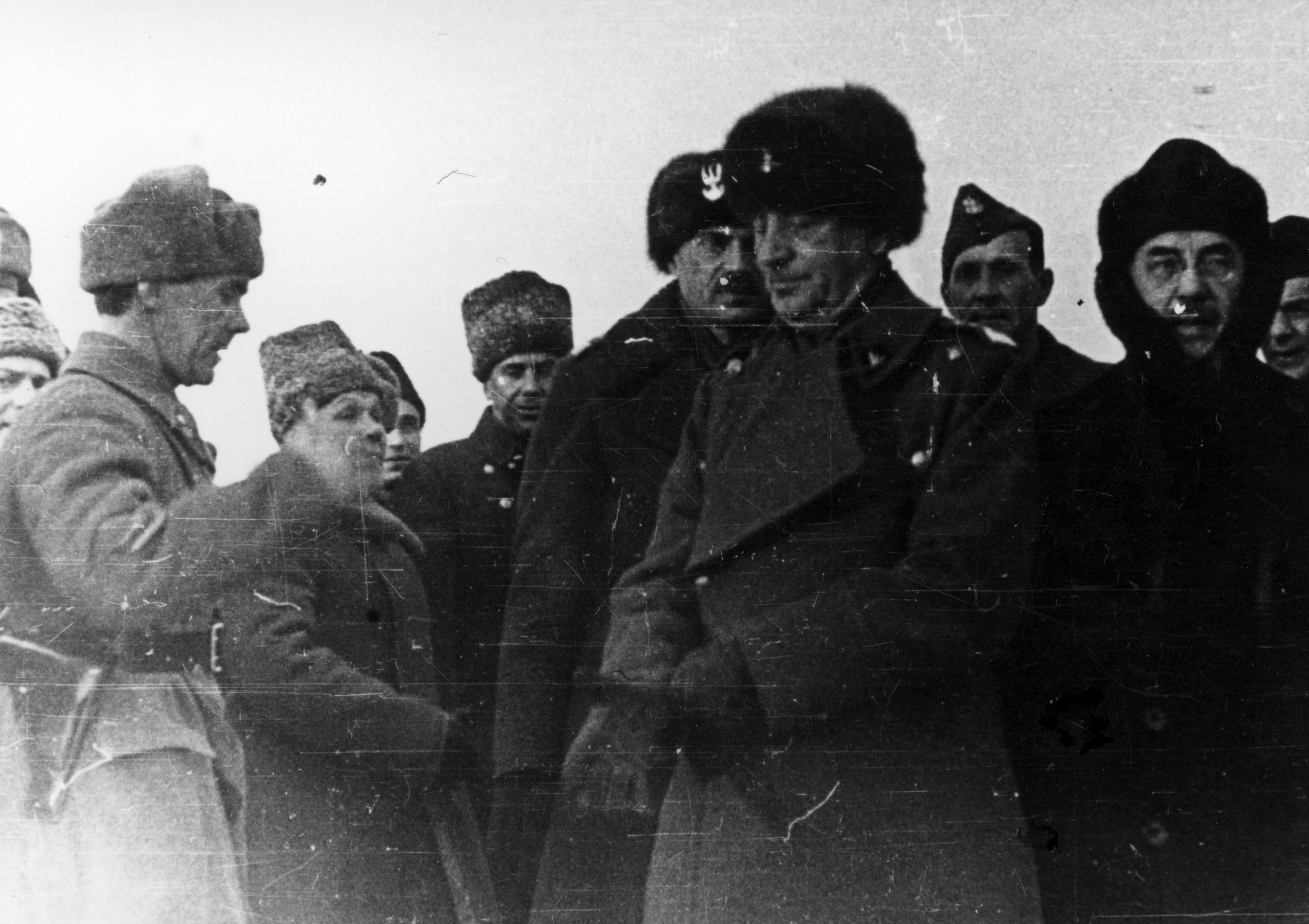 Wizyta Naczelnego Wodza gen. Władysława Sikorskiego w Armii Polskiej w ZSRR, Kujbyszew 30.11.1941 r. share Podziel się facebook google + twitter linkedin clipboard envelope print quote picture add × Cytowane źródła Cytowanie źródła on-line, czyli Internetowego Polskiego Słownika Biograficznego Wizyta Naczelnego Wodza gen. Władysława Sikorskiego w Armii Polskiej w ZSRR, Kujbyszew 30.11.1941 r., [online] Warszawa: Narodowy Instytut Audiowizualny [dostęp 27.02.2026]. Dostępny w internecie: http://www.biogramy.pl/a/foto/wizyta-naczelnego-wodza-gen-wladyslawa-sikorskiego-w-armii-polskiej-w-kujbyszewie-w-zsrr-30111941-r Cytowanie wydania drukowanego, czyli Polskiego Słownika Biograficznego , Wizyta Naczelnego Wodza gen. Władysława Sikorskiego w Armii Polskiej w ZSRR, Kujbyszew 30.11.1941 r., [w:] Polski słownik biograficzny, t. , IPSBID: ipsb-fo-80976 × Wyślij link do strony E-mail odbiorcy wiadomości: To pole jest wymaganeWpisz poprawny adres e-mail Twój adres e-mail: To pole jest wymaganeWpisz poprawny adres e-mail Podgląd wiadomości, która zostanie wysłana: Witaj, [Tutaj podany Twój e-mail] poleca Ci treść z iPSB (internetowym Polskim Słowniku Biograficznym) Wizyta Naczelnego Wodza gen. Władysława Sikorskiego w Armii Polskiej w ZSRR, Kujbyszew 30.11.1941 r. × Dodaj do kolekcji wybierz kolekcję, do której chcesz dodać ten artykuł: lub wpisz nazwę nowej kolekcji, do której chcesz dodać ten artykuł: : To pole jest wymagane Dodaj do kolekcji Wybierz kolekcję Swoje kolekcje znajdziesz w profilu. Wystarczy kliknąć ikonę zębatego koła w górnym prawym rogu. Możesz je zobaczyć tu: moje kolekcje. × Dodaj do kolekcji Element został dodany do Twojej kolekcji. Swoje kolekcje możesz zobaczyć tu: moje kolekcje. × Dodaj do kolekcji Aby dodawać materiały do kolekcji musisz się zalogować. OPIS POSTACI POWIąZANE Powitanie w Kujbyszewie. Od prawej: ambasador Stanisław Kot, gen. Zygmunt Bohusz-Szyszko, gen. Władysław Sikorski, gen. Władysław Anders. Autor fotografii: Czesław Datka. Postaci powiązane Stanisław Kot 1885-10-22 - 1975-12-26 emigrant Władysław Albert Anders 1892-08-11 - 1970-05-12 naczelny wódz PSZ na Zachodzie Władysław Eugeniusz Sikorski 1881-05-20 - 1943-07-04 naczelny wódz Zygmunt Piotr Szyszko-Bohusz (Bohusz-Szyszko) 1893-01-19 - 1982-06-20 generał PSZ na Zachodzie więcej >> Zobacz zdjęcie w najwyższej jakości Źródło