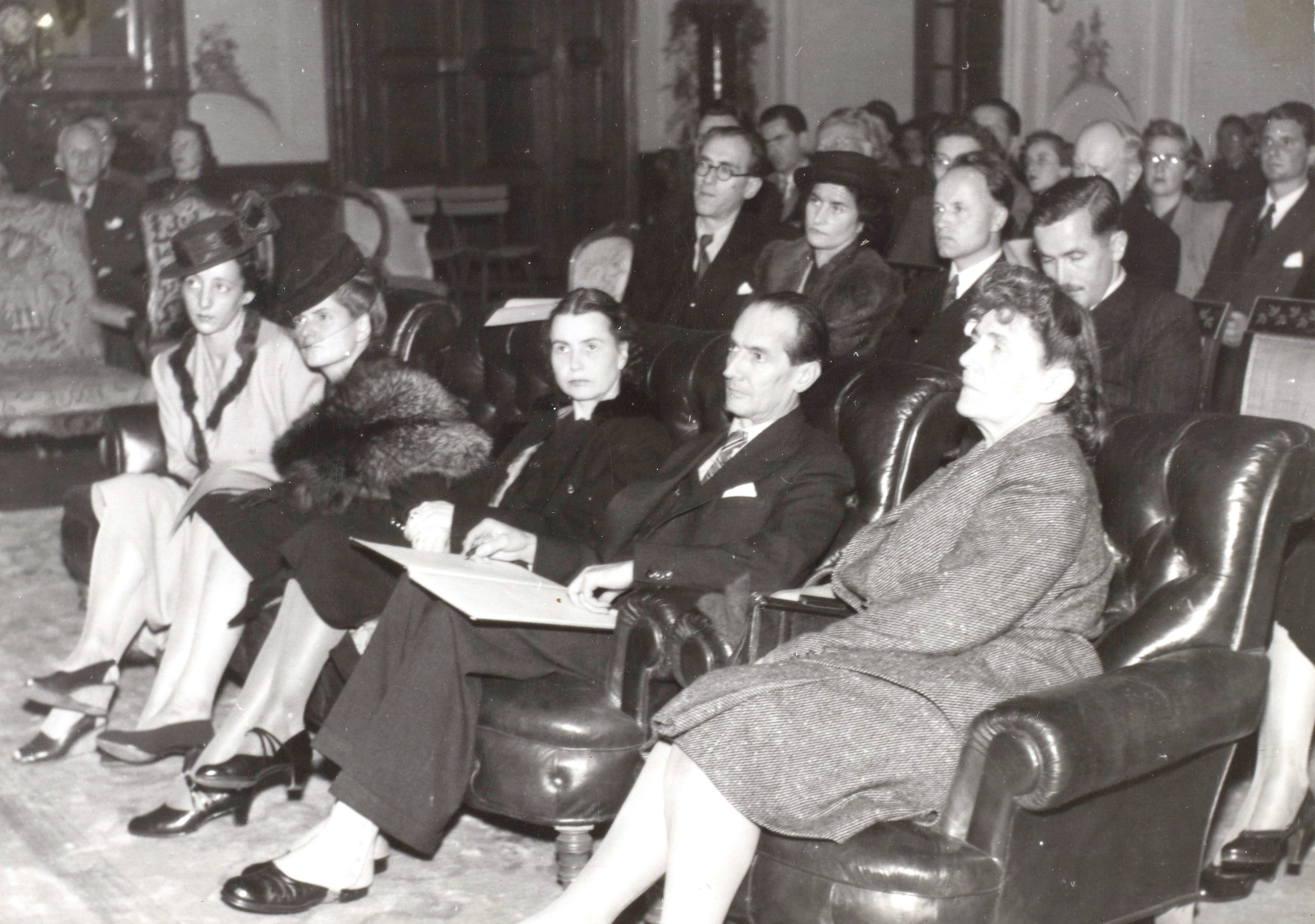 W pierwszym rzędzie siedzą (od lewej): Janina Gajewska, Maria Renata Mayenowa, żona Romana Staniewicza, Roman Adam Staniewicz i Zofia Nałkowska. W drugim rzędzie (od lewej): Józef Mayen-Szadziewicz, E. Paduchowa, Julian Przyboś i Stanisław Gajewski.