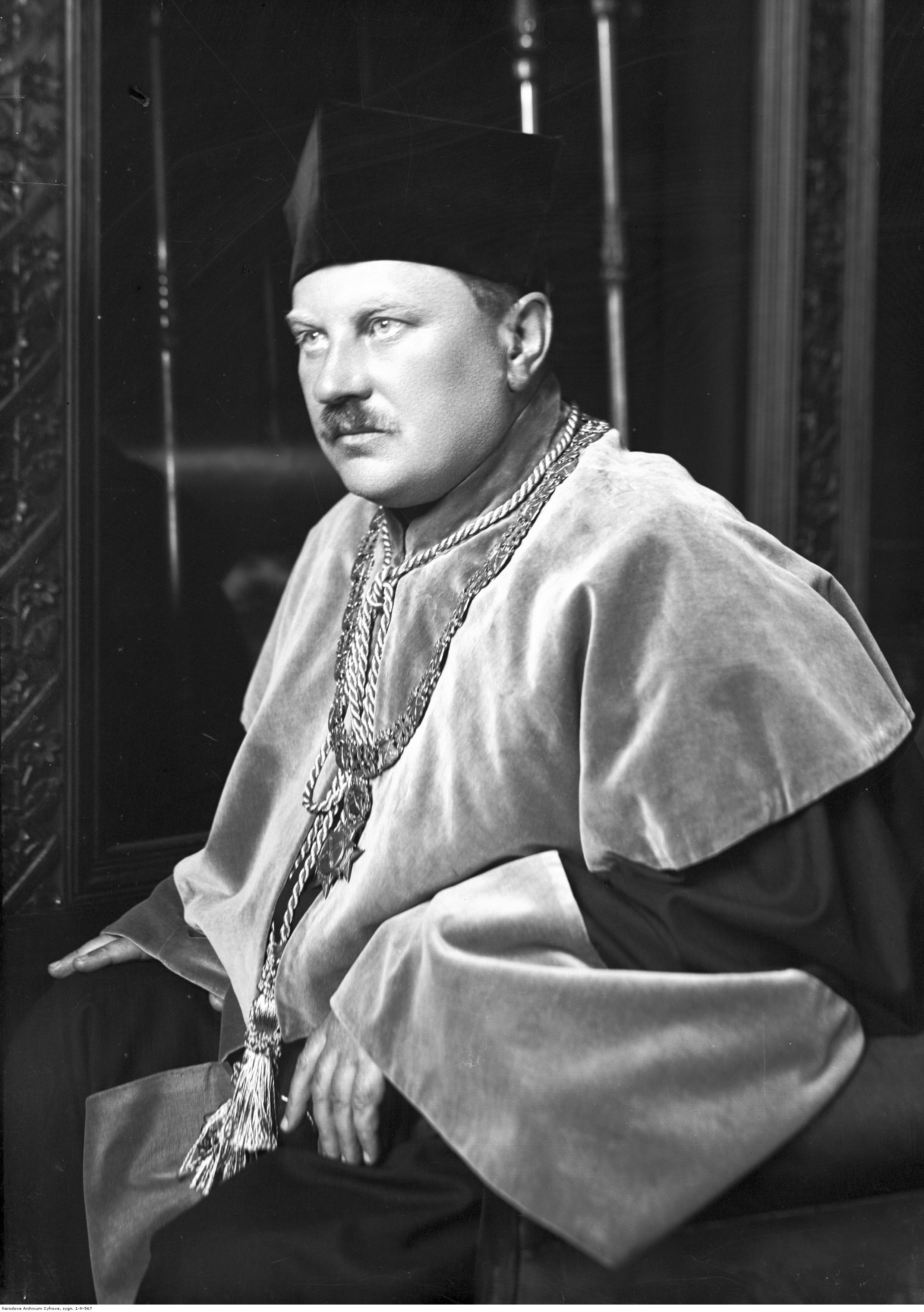 , Władysław Szafer - botanik, profesor i rektor Uniwersytetu Jagiellońskiego, wiceprezes PAU w uroczystym stroju akademickim., [w:] Polski słownik biograficzny, t. ,