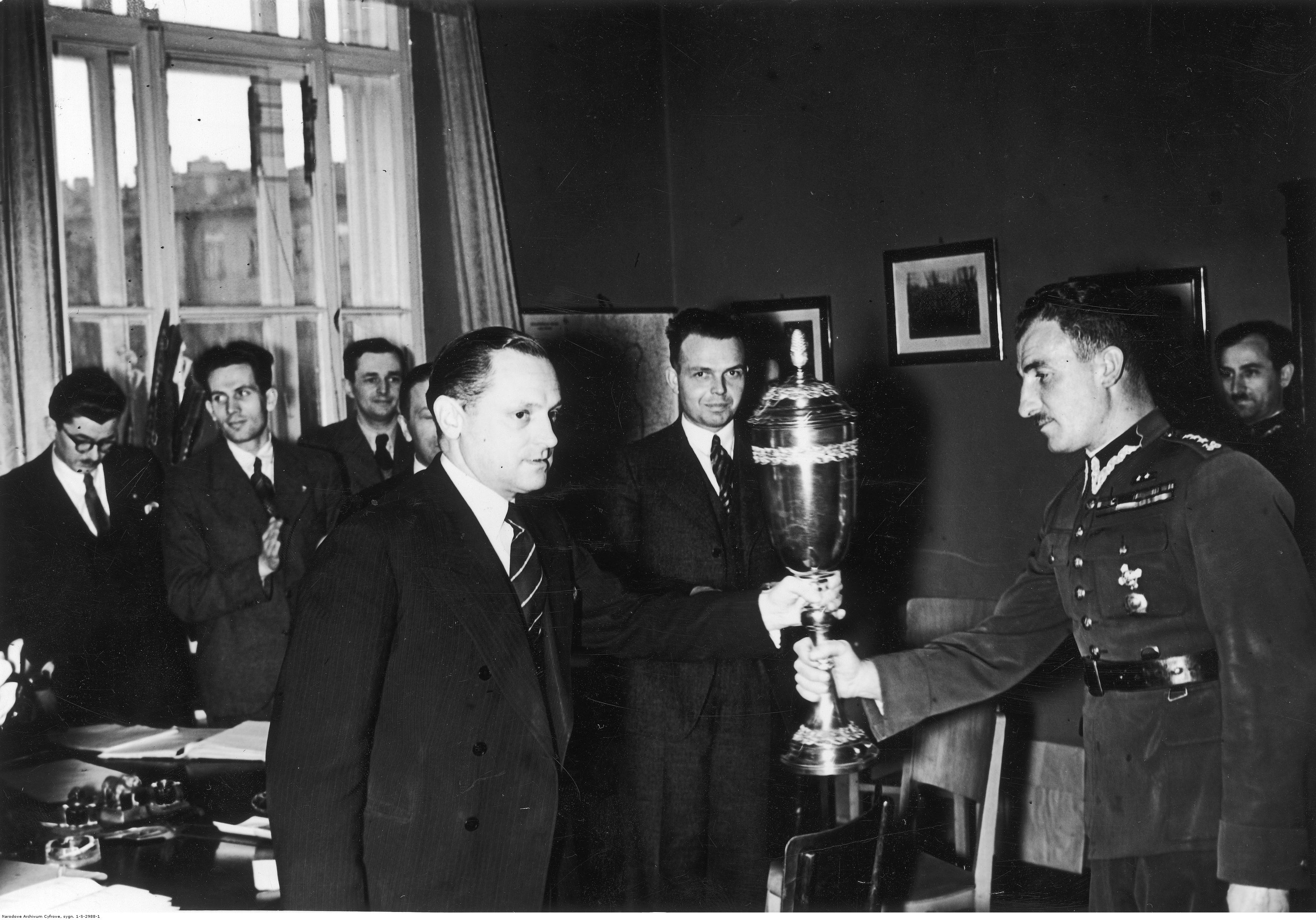 , Wręczenie nagrody prasy sportowej najlepszemu szpadziście kapitanowi Kazimierzowi Szemplińskiemu w Warszawie w kwietniu 1934 r., [w:] Polski słownik biograficzny, t. ,