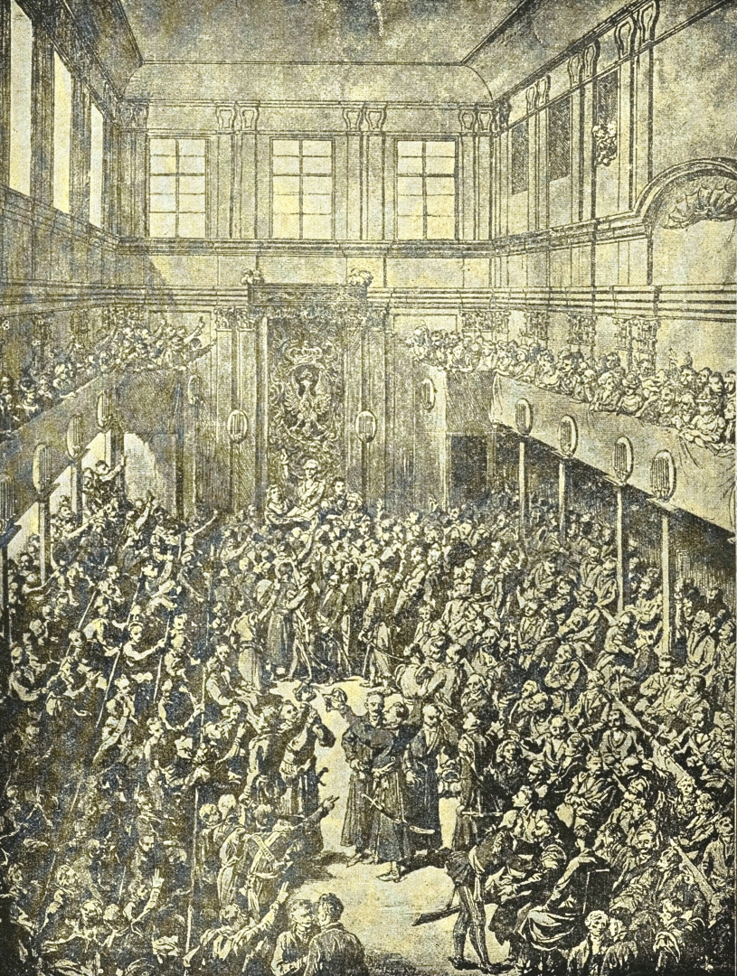 "Zaprzysiężenie konstytucyi (3 maja 1791 r.) przez króla Stanisława Augusta i polityków sejmowych.", [online] Warszawa: Narodowy Instytut Audiowizualny [dostęp 13.04.2026]. Dostępny w internecie: http://www.biogramy.pl/a/foto/zaprzysiezenie-konstytucyi-3-maja-1791-r-przez-krola-stanislawa-augusta-i-politykow-sejmowych