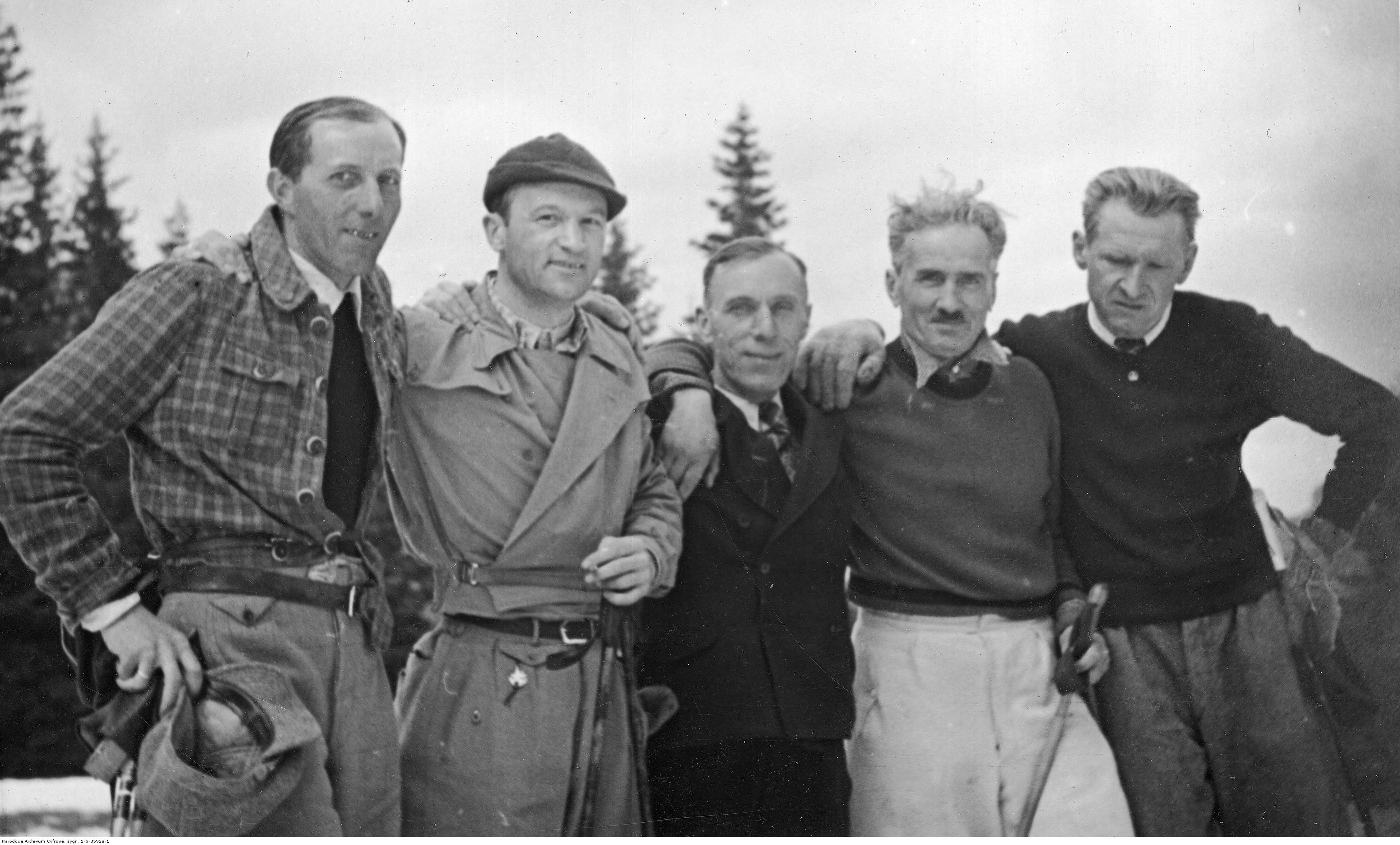W grupie narciarzy widoczni są m.in.: Franciszek Bujak, Eugeniusz Kochański, Henryk Bednarski, Kazimierz Schiele.