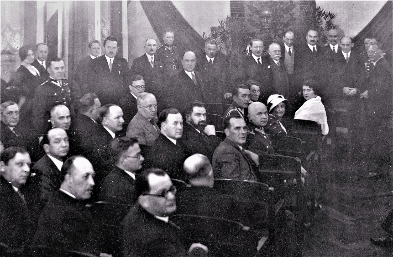 Na sali widoczni są m.in.: Wacław Sieroszewski, marszałek Kazimierz Świtalski, premier Janusz Jędrzejewicz, Ignacy Matuszewski, prezes PKO Henryk Gruber, poseł Bogusław Miedziński, prezes Walery Sławek, wiceminister Eugeniusz Piestrzyński, Wojciech Stpiczyński, dyrektor Biura Sejmowego Władysław Dziadosz (stoi pod ścianą 1. z prawej, w okularach), ppłk Janusz Albrecht (siedzi na lewo od kobiety w jasnym kapeluszu).
