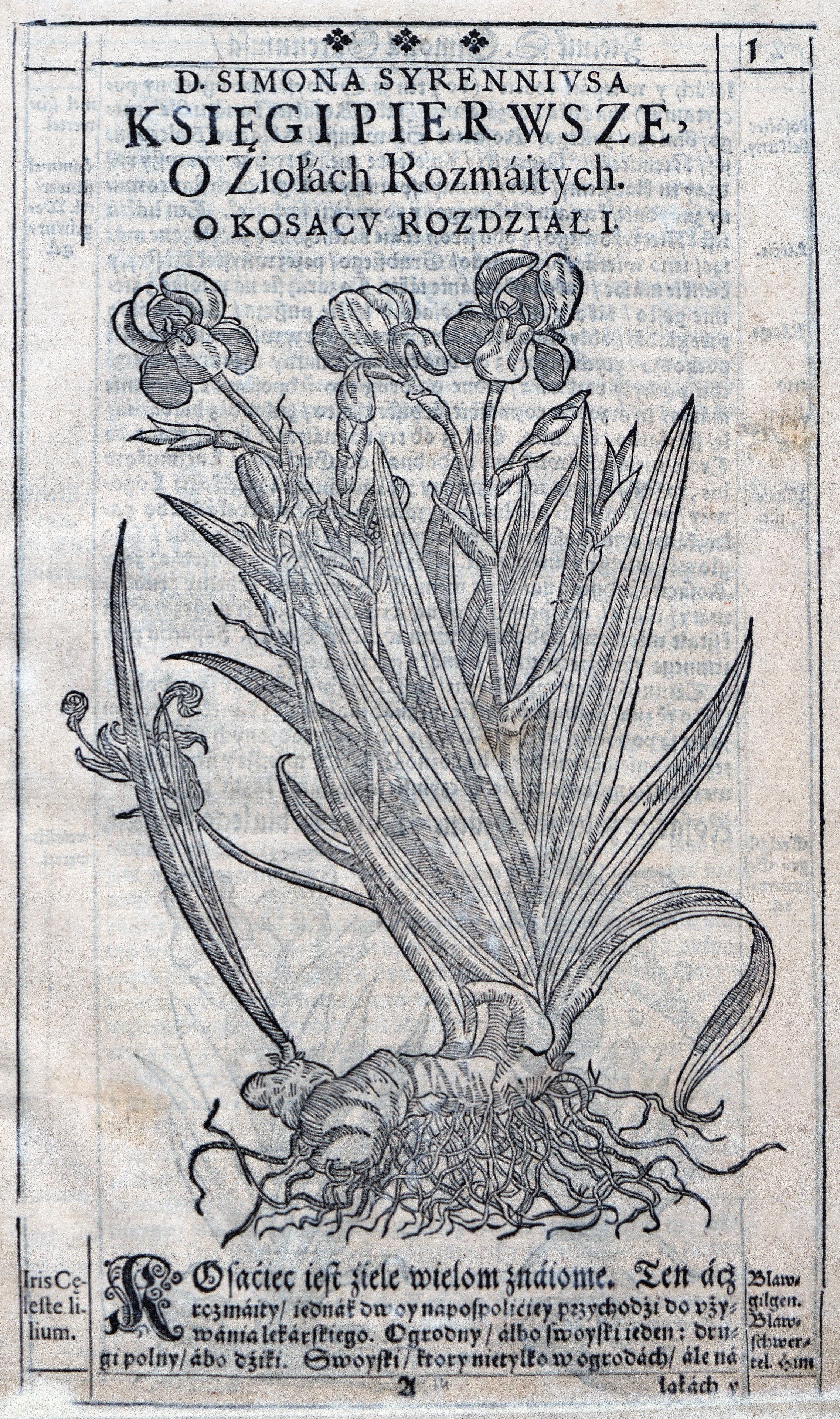 "Zielnik herbarzem z ięzyka łacinskiego zowią : to iest Opisanie własne imion, kształtu, przyrodzenia, skutkow y moc zioł wszelakich [...] polskim ięzykiem zebrany y na osmiero ksiąg rozłozony [...]" Szymona Syreńskiego., [online] Warszawa: Narodowy Instytut Audiowizualny [dostęp 13.04.2026]. Dostępny w internecie: http://www.biogramy.pl/a/foto/zielnik-herbarzem-z-iezyka-lacinskiego-zowia-to-iest-opisanie-wlasne-imion-ksztaltu-przyrodzenia-skutkow-y-moc-ziol-wszelakich-polskim-iezykiem-zebrany-y-na-osmiero-ksiag-rozlozony-szymona-syrenskiego-2