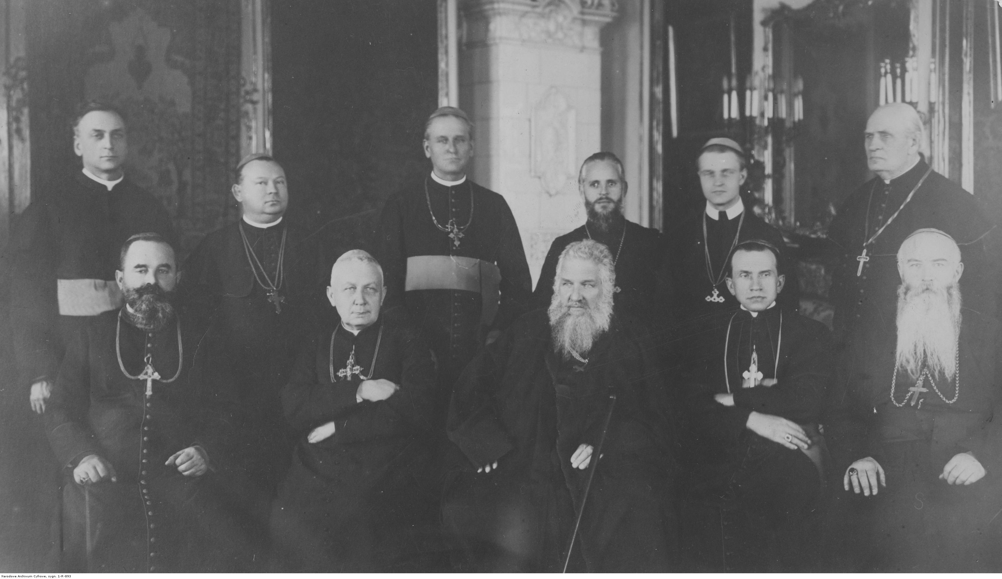 Siedzą od lewej do prawej: administrator apostolski eparchii preszowskiej biskup Dionýz Njarady, greckokatolicki biskup stanisławowski Grzegorz Chomyszyn, arcybiskup lwowski Andrzej Szeptycki, biskup Nicetas Budka z Kanady, biskup przemyski Jozafat Kocyłowski. Stoją między innymi: wikariusz generalny Józef Hanula ze Stanów Zjednoczonych, biskup Wasyl Takacz ze Stanów Zjednoczonych, biskup Piotr Hebej z Czechosłowacji, wikariusz generalny Aleksander Baczyński ze Lwowa.