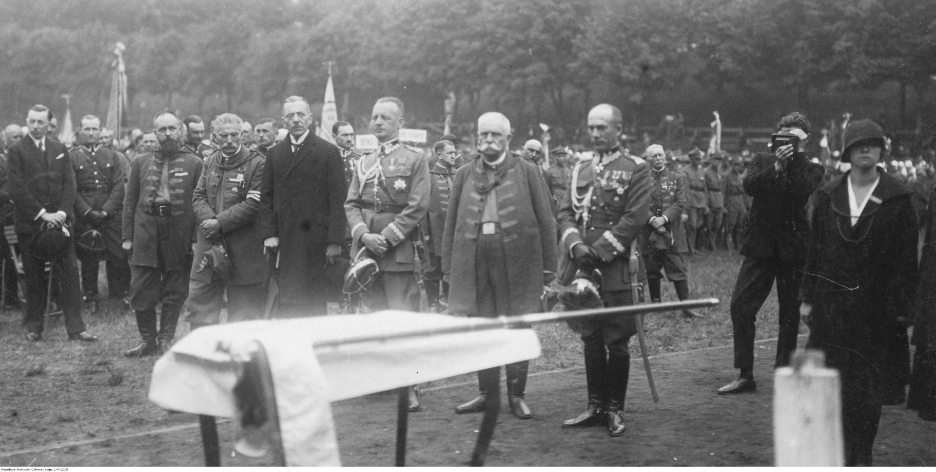 Uroczystość poświęcenia sztandaru. Widoczni m.in.: generał Władysław Sikorski (czwarty z lewej w rzędzie), generał Mieczysław Norwid-Neugebauer (szósty z lewej w rzędzie), wcewojewoda lwowski Eberhard i prezydent Lwowa Józef Neumann (piąty z lewej w rzędzie).