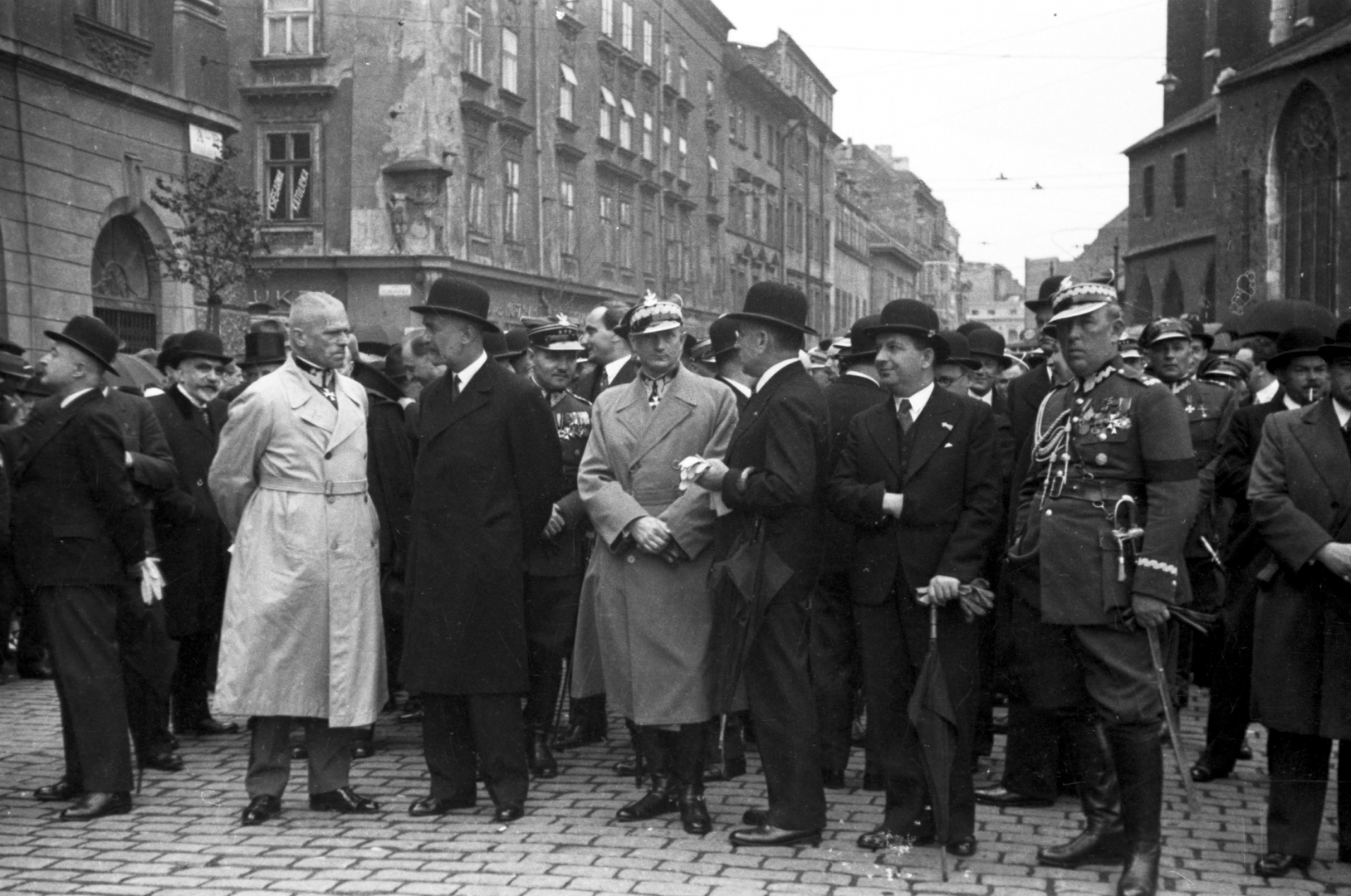 Odsłonięcie tablicy pamiątkowej. Widoczni w pierwszym rzędzie od lewej: prof. Kazimierz Władysław Kumaniecki (stoi bokiem), gen. Stanisław Haller, prezes Związku Legionistów Polskich płk Walery Sławek, gen. Aleksander Narbut-Łuczyński, prezydent Krakowa Mieczysław Kaplicki (stoi bokiem), wicewojewoda krakowski Piotr Małaszyński, dowódca 6 DP gen. Bernard Mond oraz pułkownik Marian Bolesławicz (na prawo za W. Sławkiem), wiceprezydent Krakowa Witold Ostrowski (na lewo za gen. St. Hallerem).