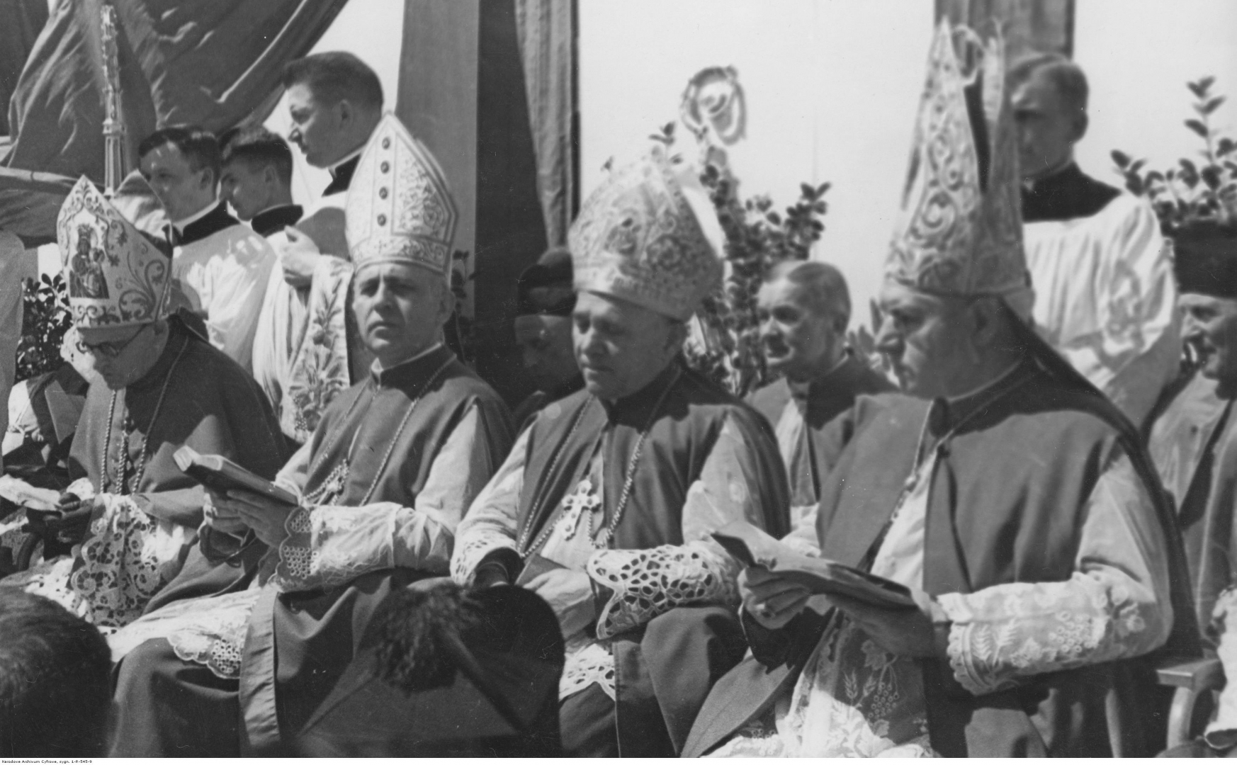 Zjazd młodzieży akademickiej na Jasnej Górze w maju 1936 roku. share Podziel się facebook google + twitter linkedin clipboard envelope print quote picture add × Cytowane źródła Cytowanie źródła on-line, czyli Internetowego Polskiego Słownika Biograficznego Zjazd młodzieży akademickiej na Jasnej Górze w maju 1936 roku., [online] Warszawa: Narodowy Instytut Audiowizualny [dostęp 13.04.2026]. Dostępny w internecie: http://www.biogramy.pl/a/foto/zjazd-mlodziezy-akademickiej-na-jasnej-gorze-w-maju-1936-roku Cytowanie wydania drukowanego, czyli Polskiego Słownika Biograficznego , Zjazd młodzieży akademickiej na Jasnej Górze w maju 1936 roku., [w:] Polski słownik biograficzny, t. , IPSBID: ipsb-fo-86132 × Wyślij link do strony E-mail odbiorcy wiadomości: To pole jest wymaganeWpisz poprawny adres e-mail Twój adres e-mail: To pole jest wymaganeWpisz poprawny adres e-mail Podgląd wiadomości, która zostanie wysłana: Witaj, [Tutaj podany Twój e-mail] poleca Ci treść z iPSB (internetowym Polskim Słowniku Biograficznym) Zjazd młodzieży akademickiej na Jasnej Górze w maju 1936 roku. × Dodaj do kolekcji wybierz kolekcję, do której chcesz dodać ten artykuł: lub wpisz nazwę nowej kolekcji, do której chcesz dodać ten artykuł: : To pole jest wymagane Dodaj do kolekcji Wybierz kolekcję Swoje kolekcje znajdziesz w profilu. Wystarczy kliknąć ikonę zębatego koła w górnym prawym rogu. Możesz je zobaczyć tu: moje kolekcje. × Dodaj do kolekcji Element został dodany do Twojej kolekcji. Swoje kolekcje możesz zobaczyć tu: moje kolekcje. × Dodaj do kolekcji Aby dodawać materiały do kolekcji musisz się zalogować. OPIS POSTACI POWIąZANE Fragment nabożeństwa. Widoczni na pierwszym planie od prawej: biskup śląski Stanisław Adamski, biskup tarnowski Franciszek Lisowski, biskup polowy WP Józef Gawlina, biskup częstochowski Teodor Kubina. Postaci powiązane Teodor Filip Kubina 1880-04-16 - 1951-02-13 biskup częstochowski Stanisław Adamski 1875-04-12 - 1967-11-12 biskup katowicki Józef Feliks Gawlina 1892-11-18 - 1964-09-21 generał dywizji WP więcej >> Zobacz zdjęcie w najwyższej jakości Źródło