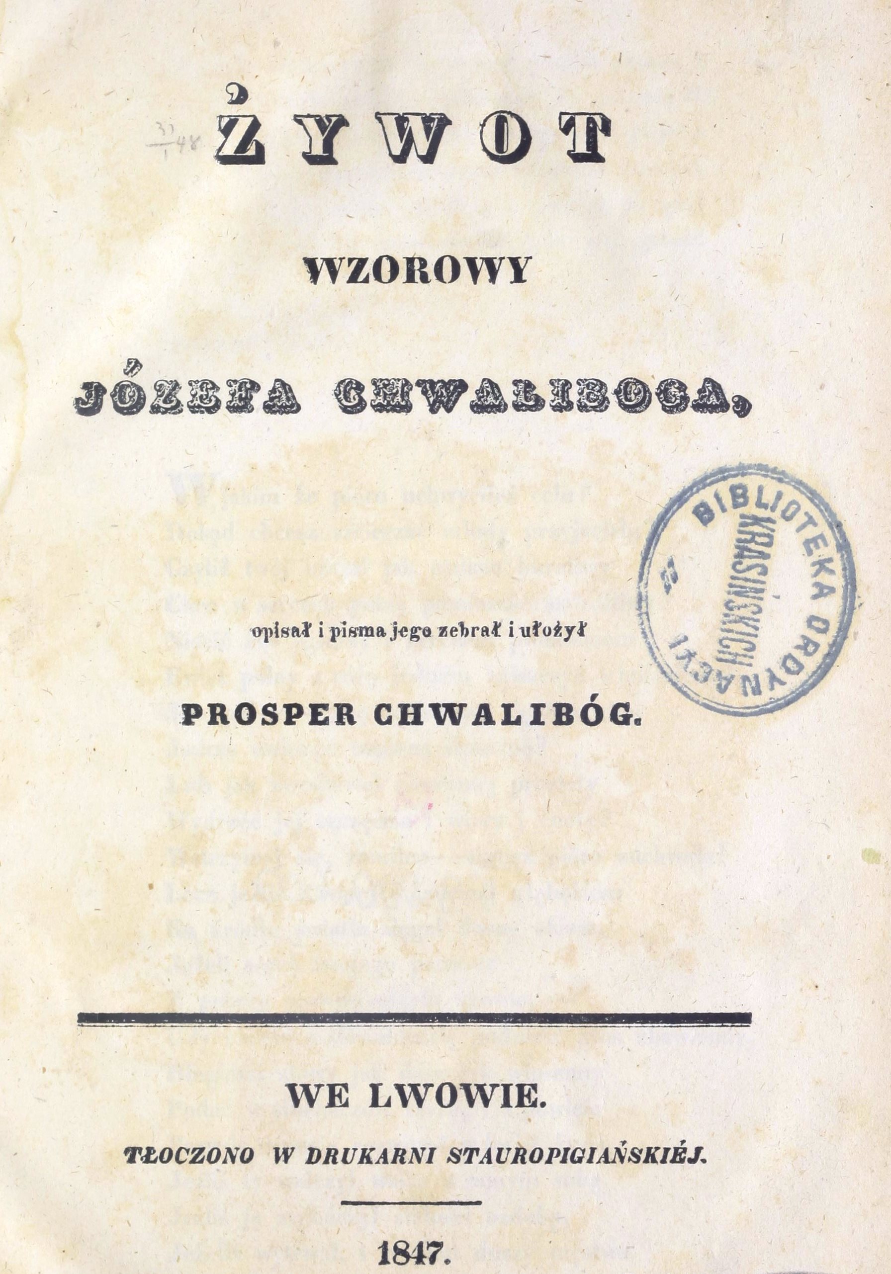 , "Żywot wzorowy Józefa Chwaliboga" Prospera Chwaliboga., [w:] Polski słownik biograficzny, t. ,
