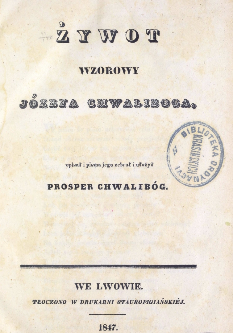 "Żywot wzorowy Józefa Chwaliboga" Prospera Chwaliboga., [online] Warszawa: Narodowy Instytut Audiowizualny [dostęp 06.03.2026]. Dostępny w internecie: http://www.biogramy.pl/a/foto/zywot-wzorowy-jozefa-chwaliboga-prospera-chwaliboga
